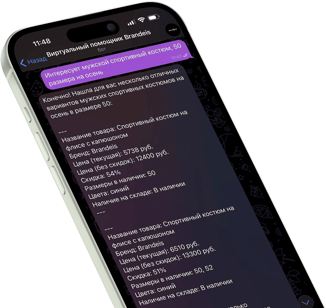 Ведут переписку в мессенджерах и на сайте, мгновенно отвечают на вопросы и подбирают подходящий продукт